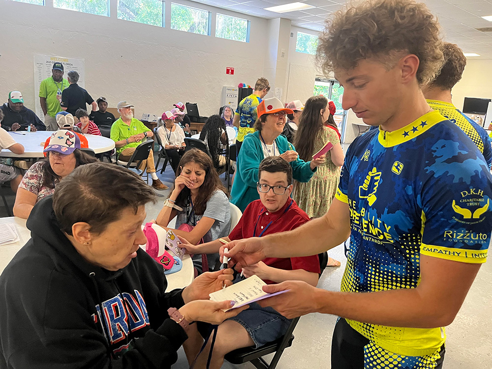 Bicyclists representing Pi Kappa Phi fraternity at colleges and universities throughout the U.S. rolled onto The Arc's main campus as part of the 2025 Gear Up Florida/Ability Experience Friendship Visit on May 20th. This 'client-favorite' event brings together Arc clients, employees, visitors and community VIPs for a day of food, fellowship and fun. The Gainesville stop was just one of many for these bicyclists who bike nearly 1,000 miles from Miami to Tallahassee in the month of May to help raise money and awareness for people with developmental disabilities.